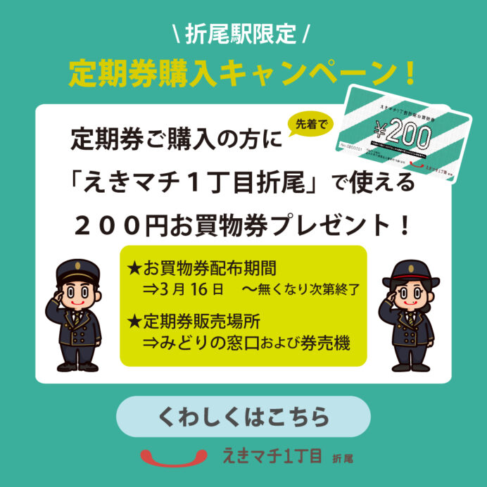 2026年3月16日(月)から定期券購入キャンペーンを実施中🚃