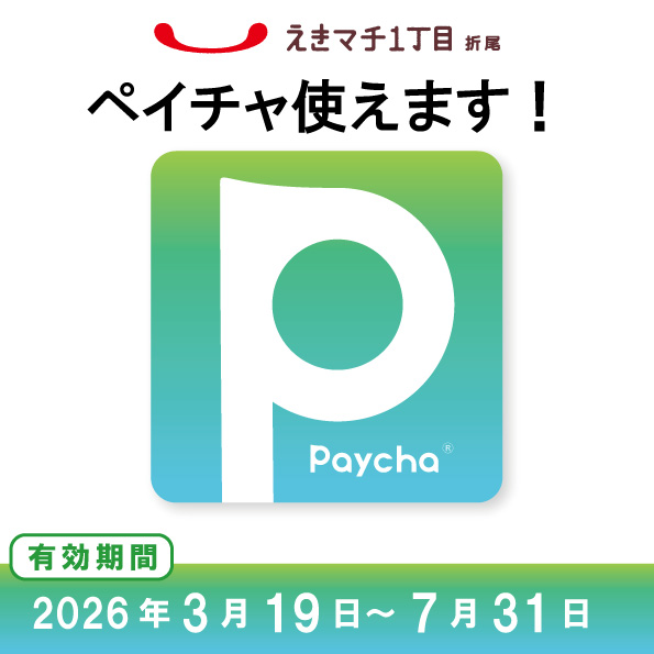 北九州市内の取扱店でご利用いただける「ペイチャ」が「えきマチ1丁目折尾」の店舗でもご利用いただけます。