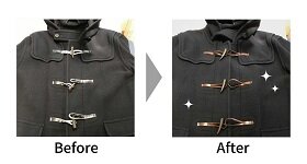 お手持ちのダッフルコートの留め具(トグル)部分の革ひもが乾燥でひび割れたり、合皮のループが経年劣化で裂けてきたりしていませんか?