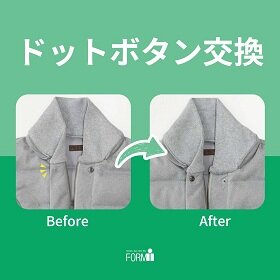 ※外れた金具(ロゴ入りなど)は再利用ができないため、大きさやカラーなど似寄りのものに変更となります。店頭には、ドットボタンのサンプルがあります。ご来店の際はお洋服のみお持ちいただければ大丈夫です。