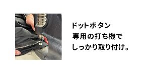 ブルゾンやコート、防寒ウエア(ジャンパー、スポーツウエア、ユニフォーム、ダウン)など、幅広い洋服に使われている「ドットボタン」、小さなお子さまでも着脱しやすいため、子供服にもよく使われています。