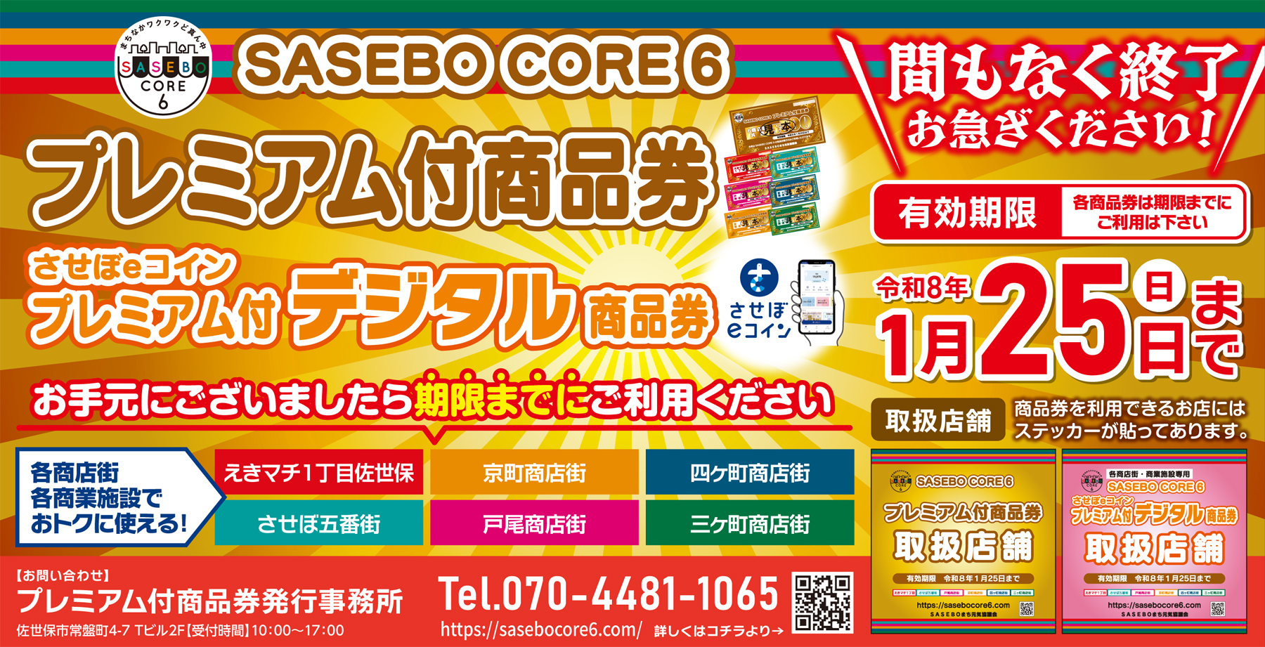 SASEBO CORE6 プレミアム付商品券の利用期限にご注意ください!